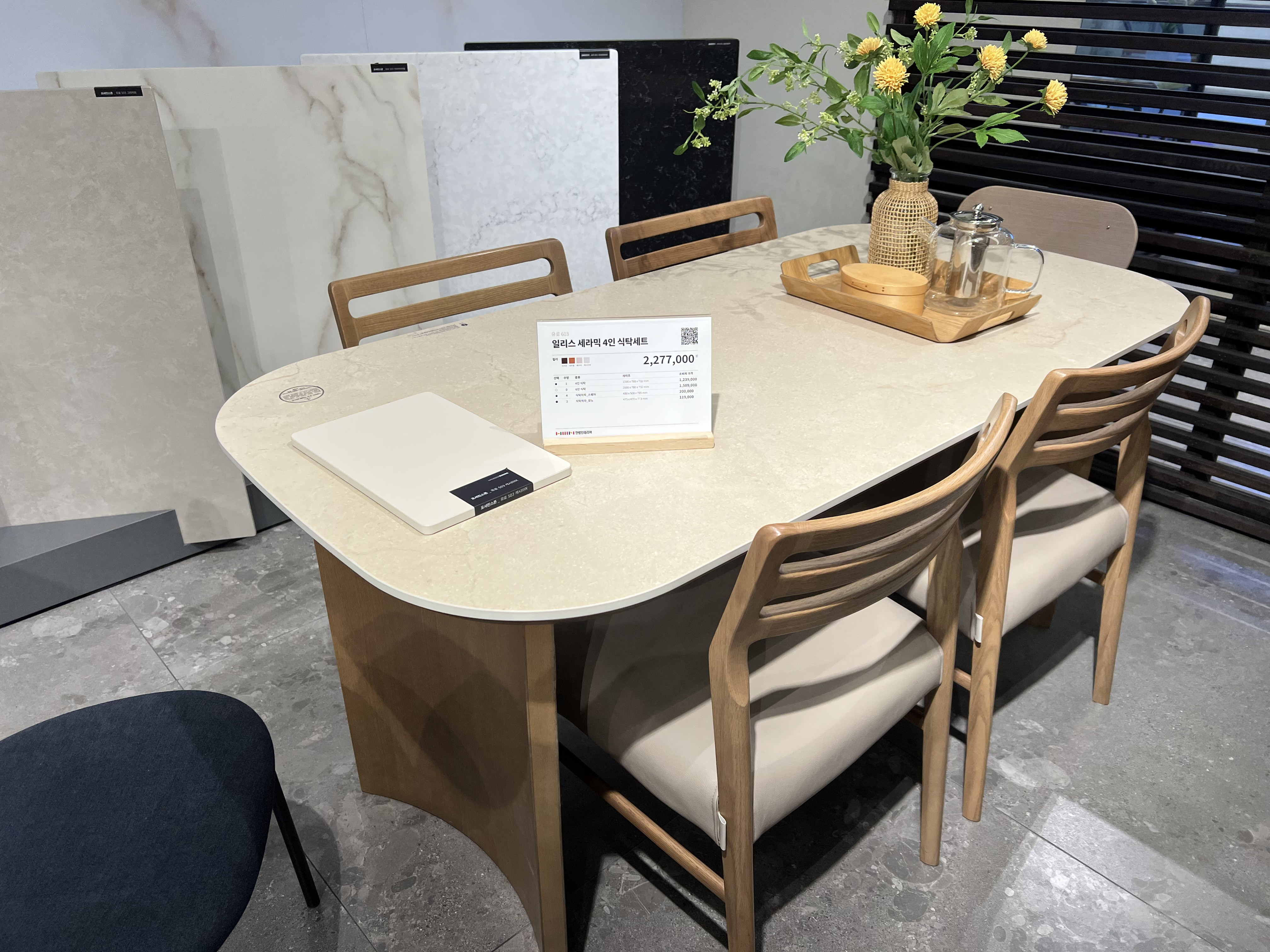 마지막으로 다이닝테이블은 요즘 세라믹이 많아서 세라믹이 좋아보이더라구요
